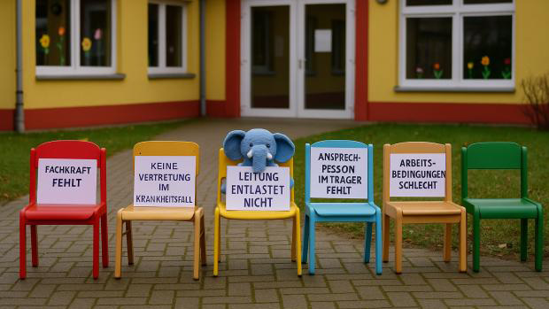 Der Kreiskitaelternbeirat Teltow-Fläming ruft deswegen in diesem Jahr zu einer besonders niedrig schwelligen Aktion auf. Unter dem Motto "Leere Stühle – volle Belastung" starten sie gemeinsam mit den Einrichtungen des Landkreises eine Foto-Aktion. Die Ergebnisse werden im Anschluss u.a. als Postkarte veröffentlicht.