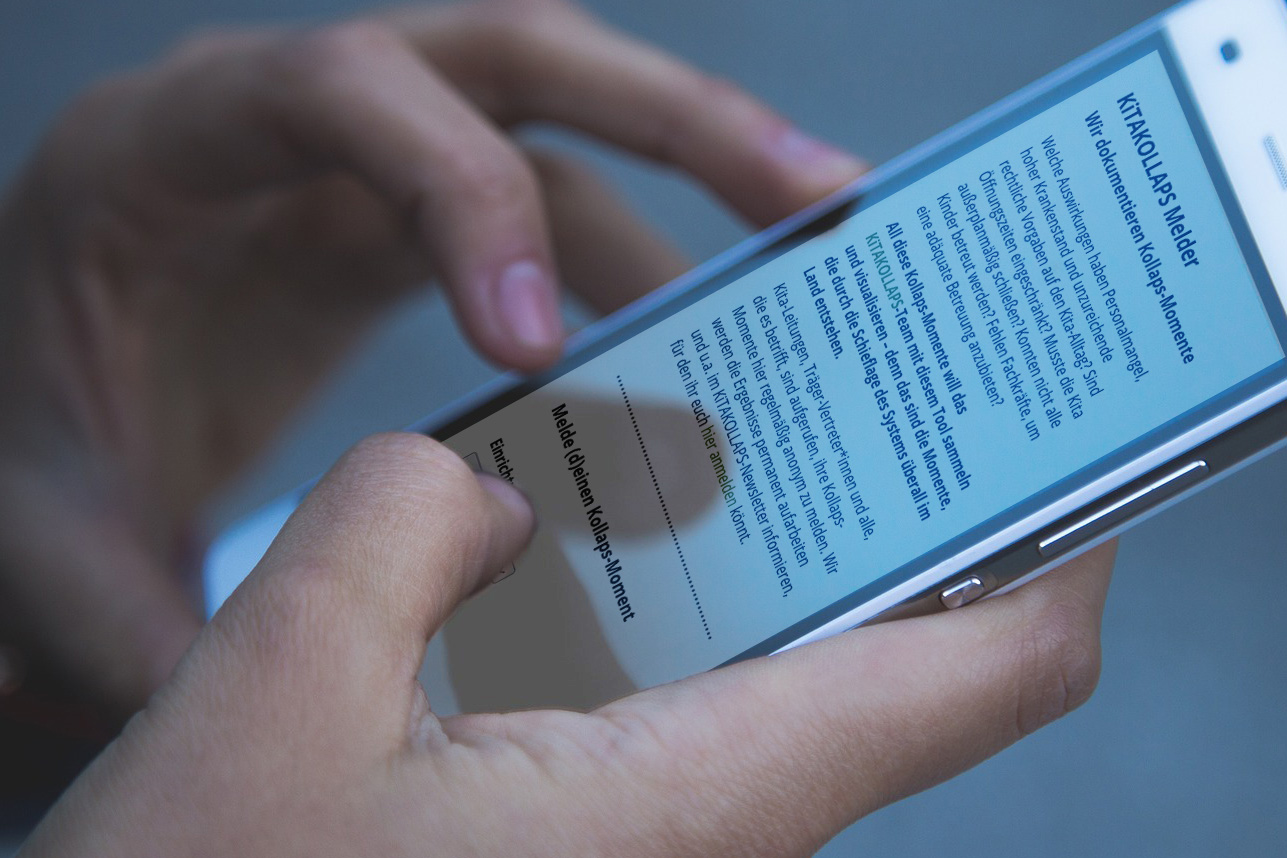 Um die Lage in den Einrichtungen sowie die Herausforderungen für Familien, Fachkräfte und Träger greifbar zu machen, sammeln wir aktuelle mit zwei Umfragen Daten ein. Die Ergebnisse darauf werten im Rahmen unserer Bündnis-Arbeit aus. Eine der beiden Abfragen richtet sich an Einrichtungen (der KiTAKOLLAPS Melder), eine an die Eltern von Kita- und Hortkindern.